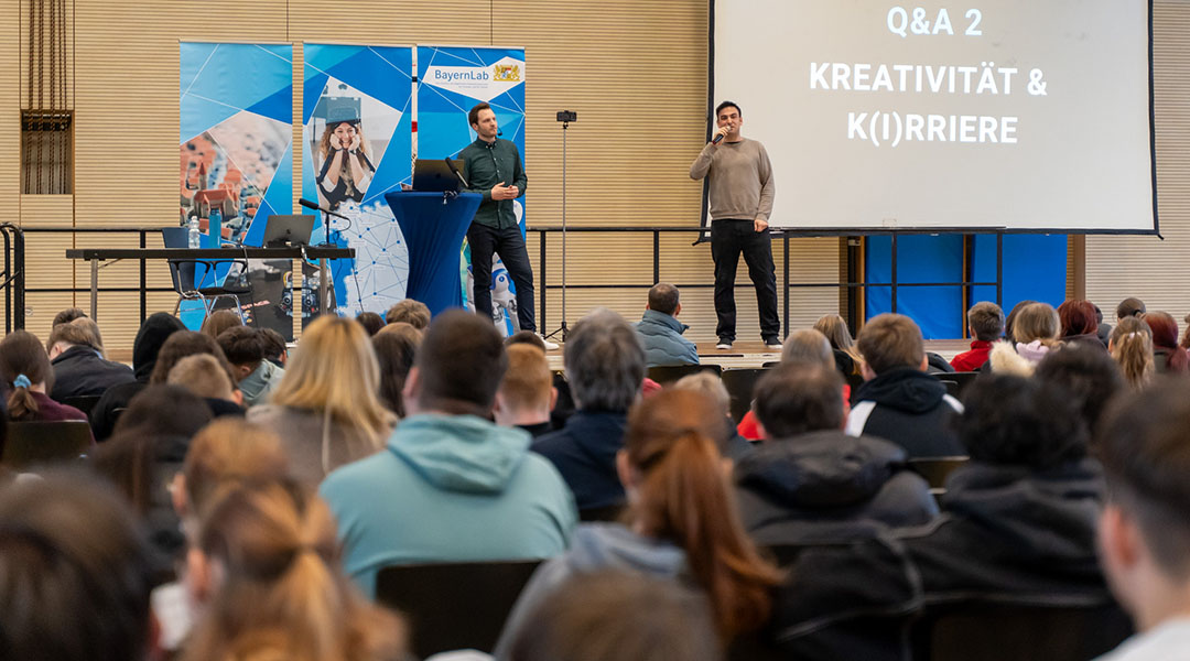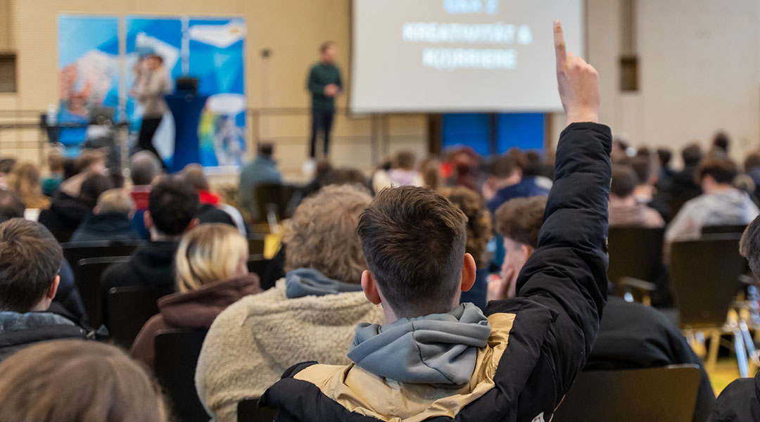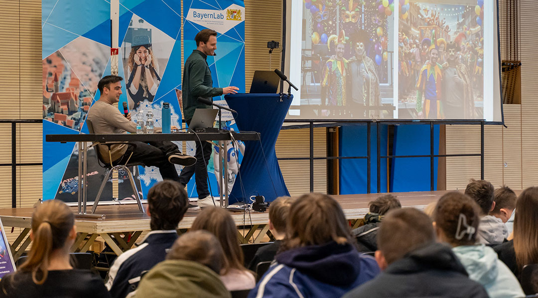 Die beiden Referenten Sven Steger und Moritz Diehl sind bewusst vom klassischen Vortragsformat abgewichen, haben das Publikum mit eingebunden und zum interaktiven Austausch animiert. An den beiden Sprechstunden am Vormittag nahmen jeweils rund 300 Schülerinnen und Schüler aus den Landkreisen Forchheim und Bamberg teil. Am Nachmittag hatten dann etwa 75 Lehrkräfte und pädagogische Fachkräfte die Gelegenheit, ihre Fragen an die beiden Experten zu stellen und sich auch untereinander auszutauschen.